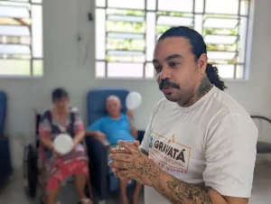 A coordenadora de saúde mental do município Graça acompanhada da coordenadora do CAPS Selma e Giga oficineiro fizeram da nossa manhã um lindo momento de reflexão e aprendizado.